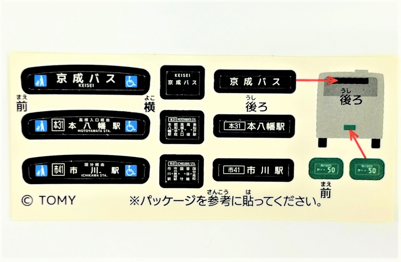方向幕は「京成バス」「本八幡駅」「市川駅」の3種類です。