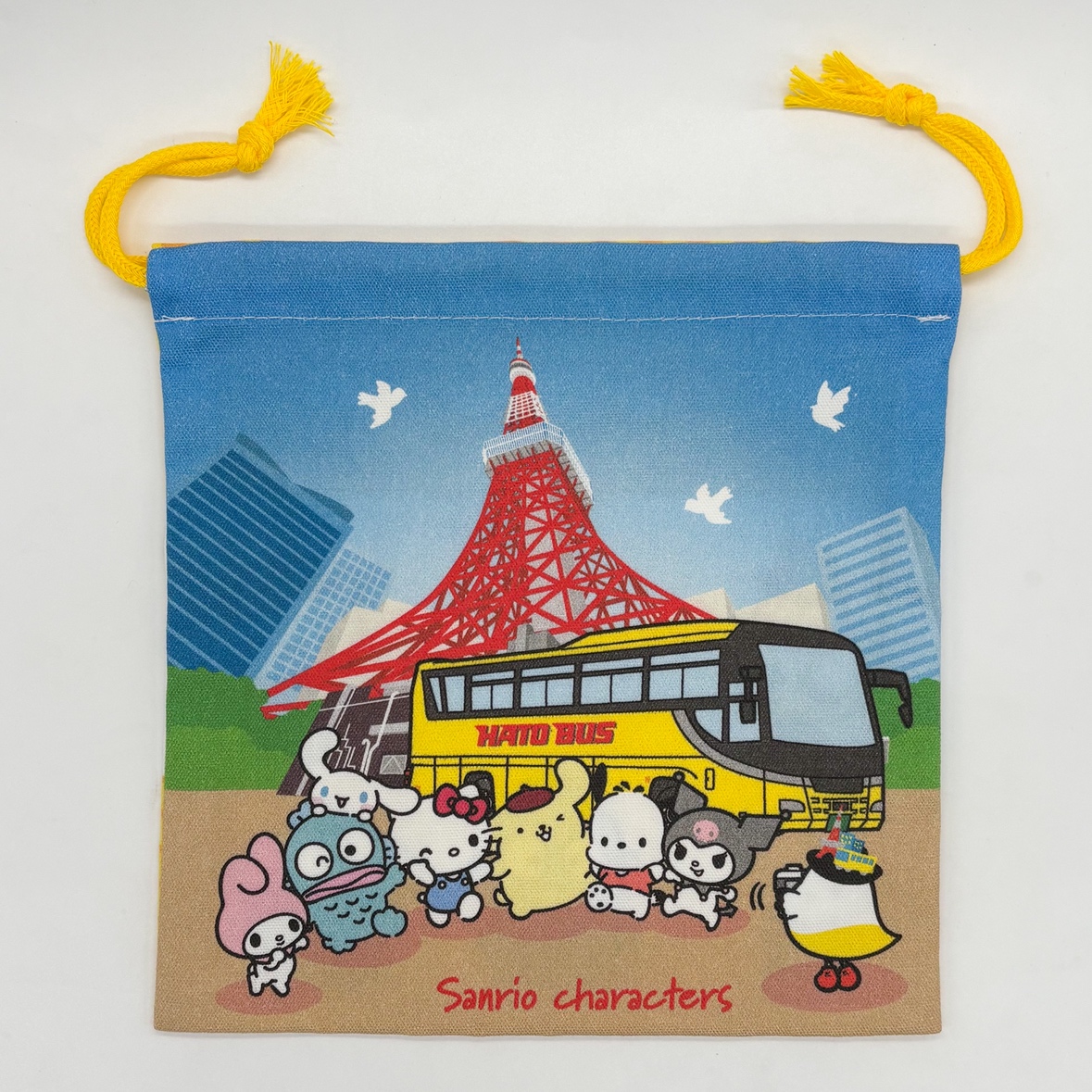 サンリオキャラクターズとはとバス公式キャラクターのしゃぽぽがコラボした巾着袋です!
