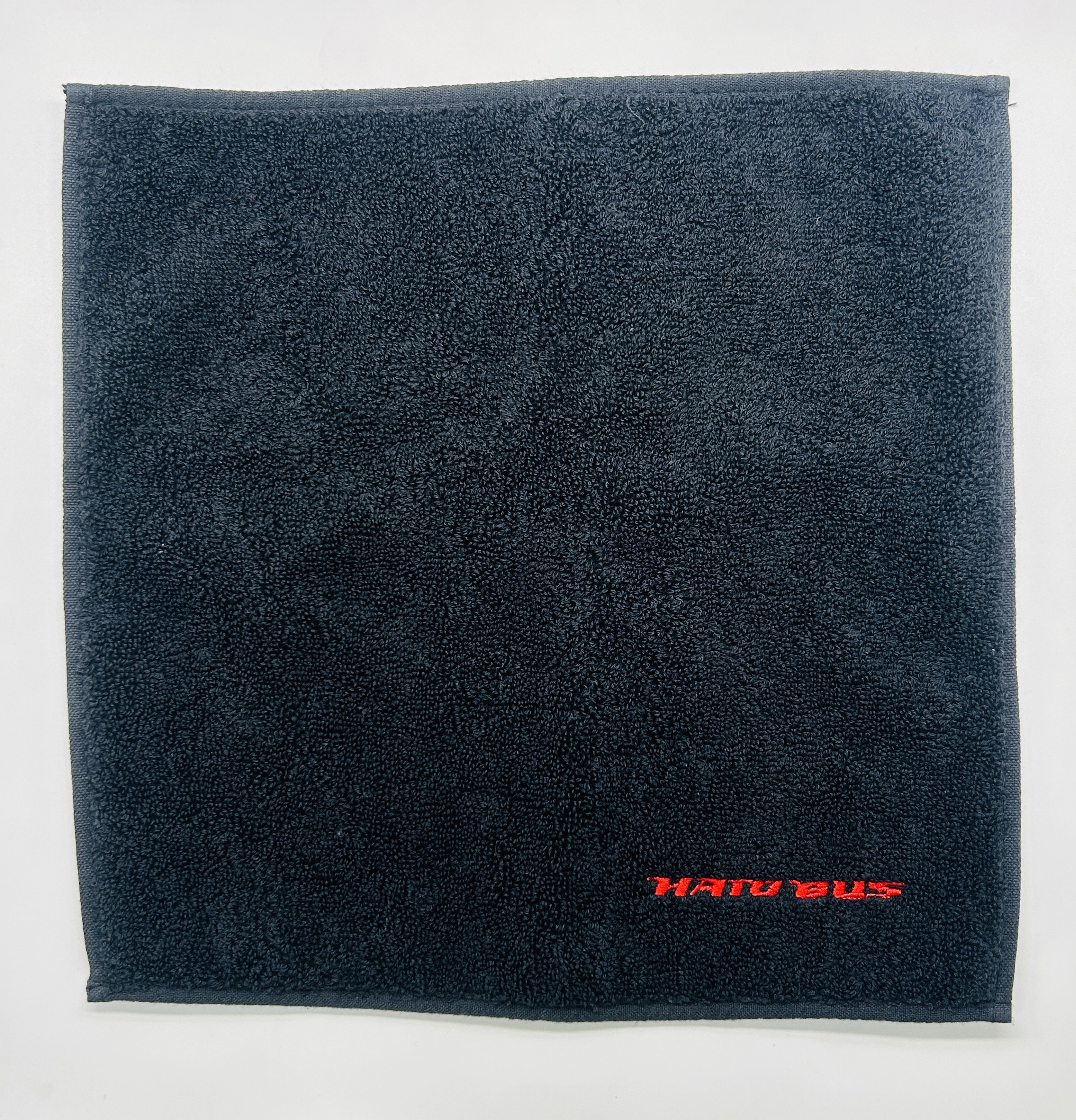 はとバスのロゴが刺繍された『今治タオル(黒色)』です。