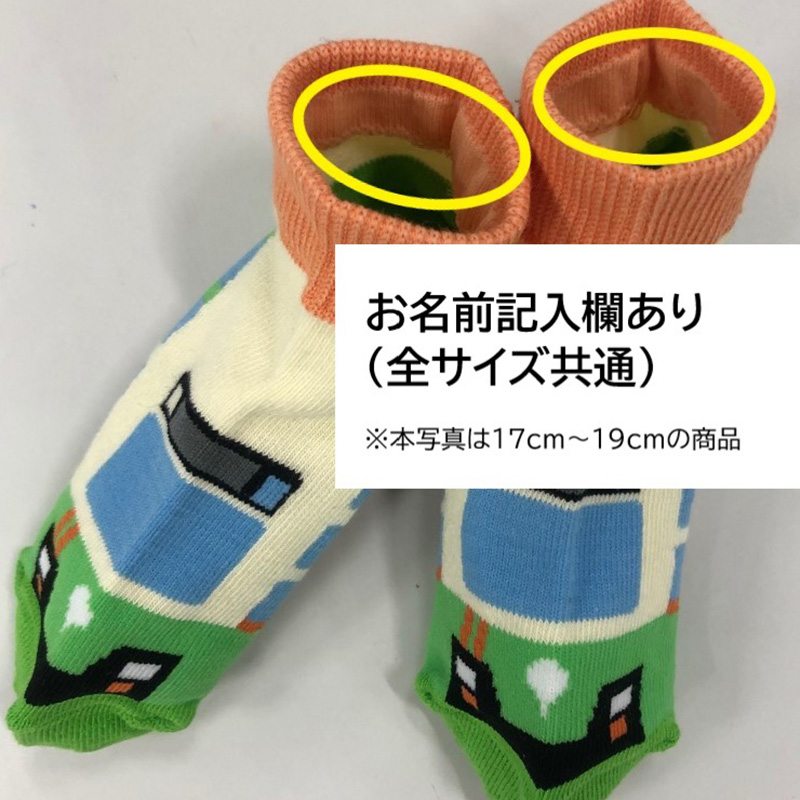 3サイズ展開で、足首にはおなまえ欄がついています。