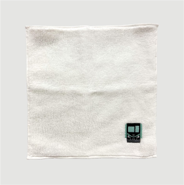 日暮里・舎人ライナーのグリーンの車両(320形)を刺しゅうしたハンドタオルです。今治タオル素材なので肌触りも良いですよ♪