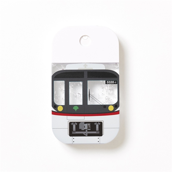 都営浅草線5300形デザインのアルコールジェル。持ち運びしやすい手のひらサイズです。