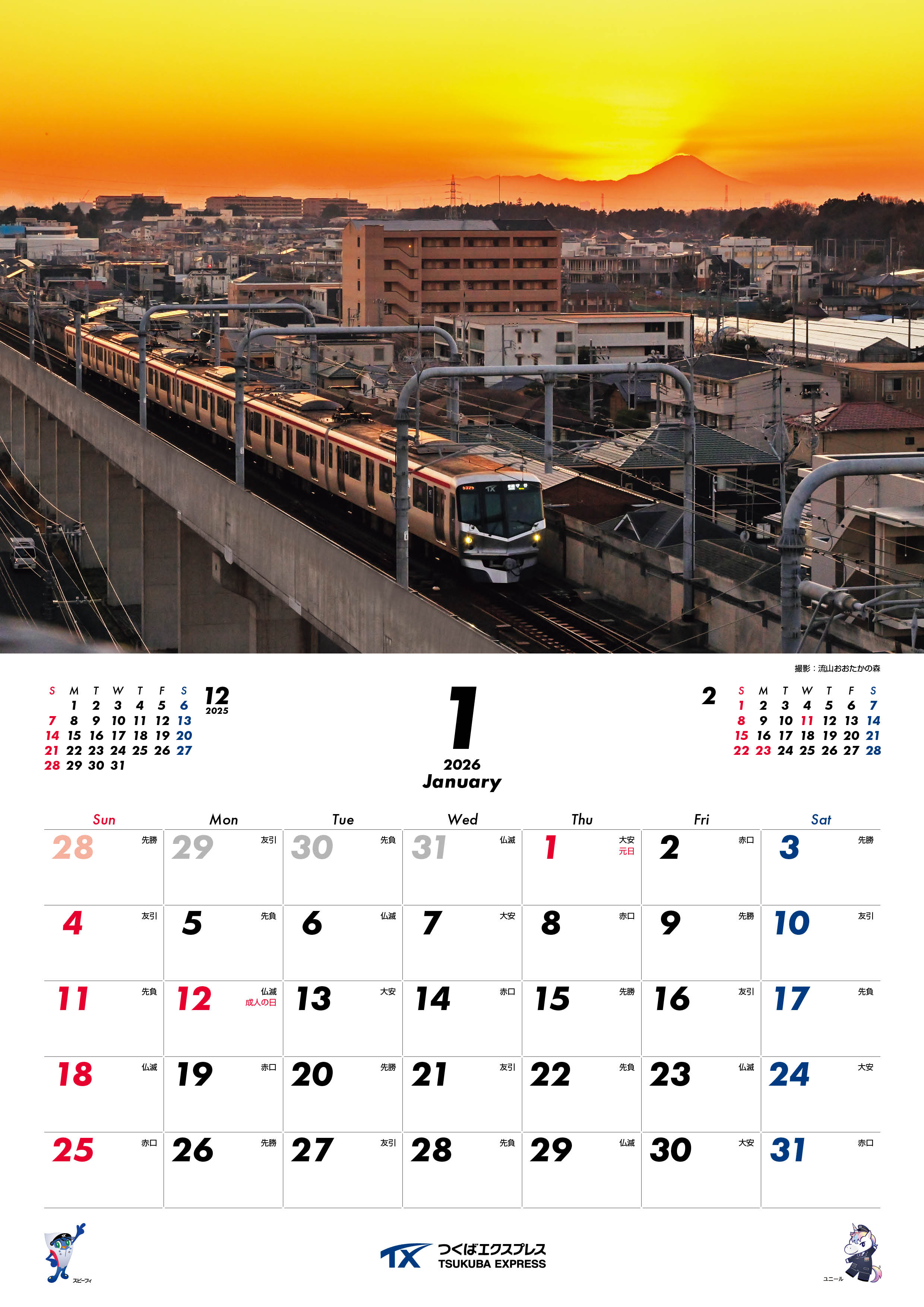 「つくばエクスプレスカレンダー2026年版(壁掛け用)」を発売します。